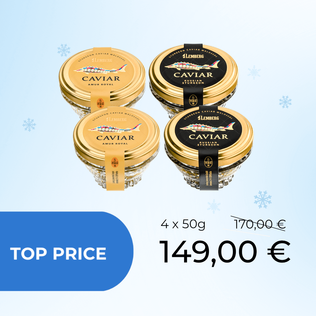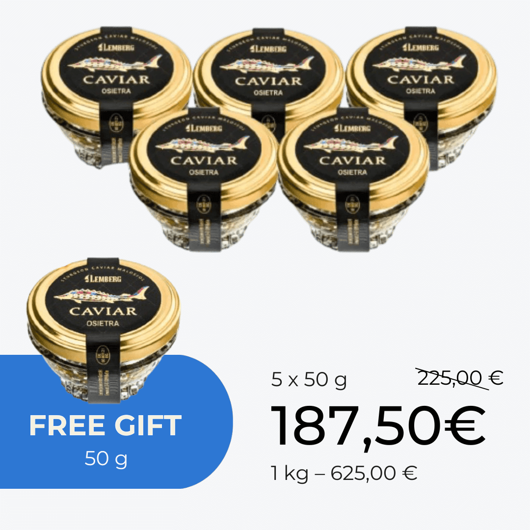 Lemberg ofrece una amplia selección de auténtico caviar de esturión. El caviar de beluga, el más famoso del mundo, sigue siendo muy popular. Los gourmets lo valoran por su exquisito sabor a nuez y su gran tamaño de grano.